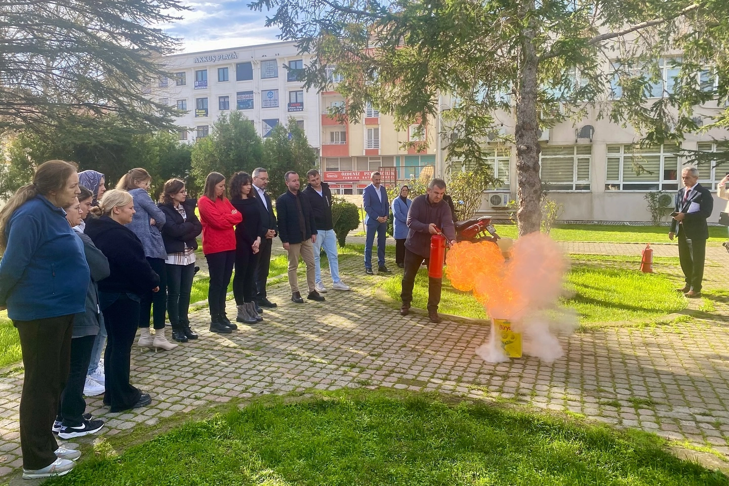 Pınarhisar Kaymakamlığı tarafından yapılan açıklamaya göre, iş sağlığı ve güvenliği kapsamında Hükümet Konağı personeline yönelik yangın söndürme tatbikatı gerçekleştirildi. Tatbikata Kaymakam Enver Özderin de katılarak çalışmaları yerinde takip etti.