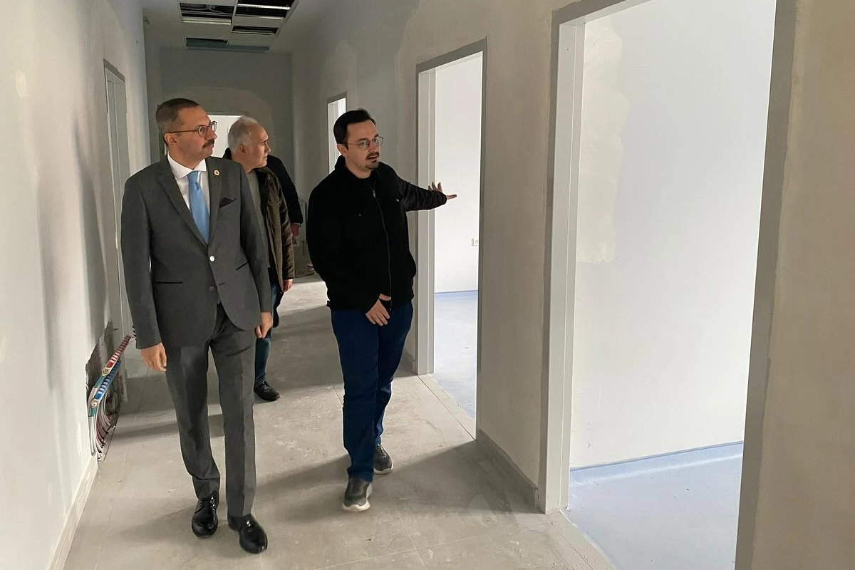 Kaymakam Özderin, ziyaret sırasında Toplum Sağlığı Merkezi Başkanı Dr. Emre Cesur’dan yürütülen projeler ve inşaat süreci hakkında detaylı bilgi aldı.