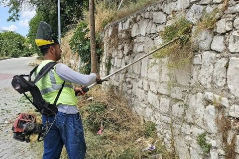 Pınarhisar Belediyesi Park ve Bahçeler Müdürlüğü ekipleri, yol kenarları ve kaldırımlardaki otları temizledi.