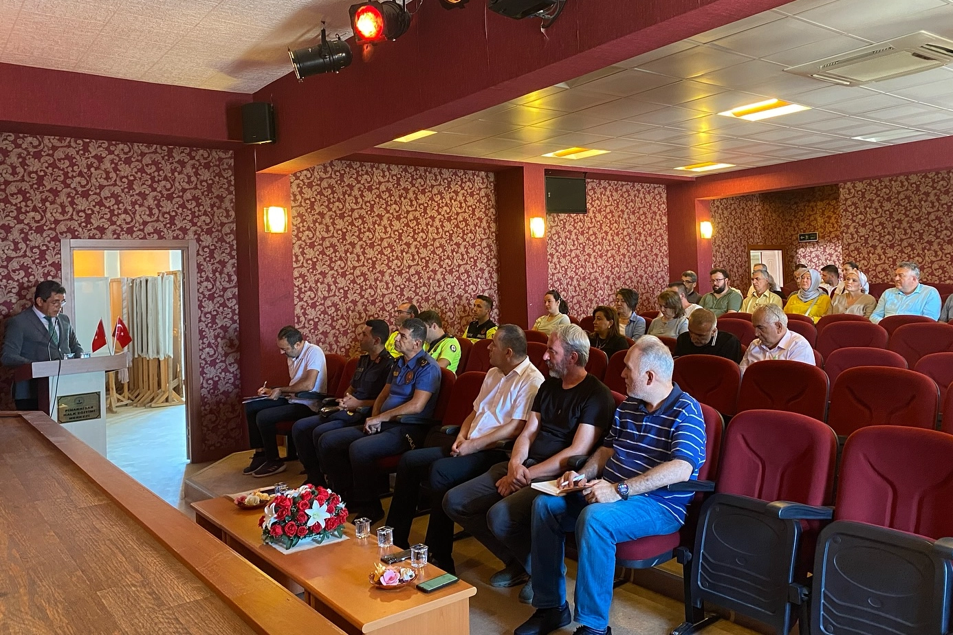 Kaymakam Enver Özderin başkanlığında kaymakamlık toplantı salonunda gerçekleştirilen toplantıda, İlçe Milli Eğitim Müdürü Mahmut Doğan hazırlık çalışmaları hakkında brifing verdi.