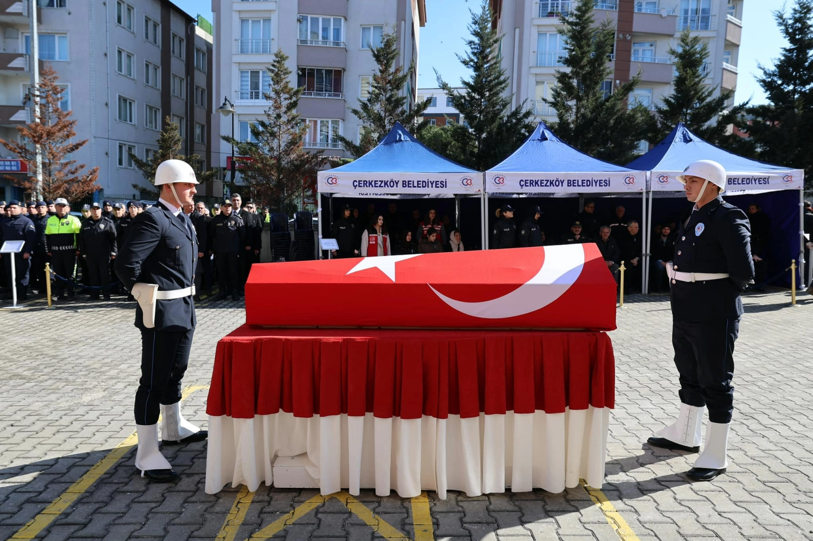 Çerkezköy Belediye Başkanı Vahap Akay, Çerkezköy İlçe Emniyet Müdürlüğü Koruma Büro Amirliği’nde görev yapan polis memuru Ümit Saçan’ın cenaze törenine katıldı.