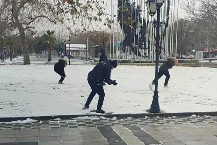 Gece saatlerinde etkili olan kar yağışı sonrası sahil dolgu alanı ve çevresi tamamen karla kaplanırken, sabah saatlerinde sahile gelen çocuklar kartopu oynamaya başladı. Sahilde görev yapan polis ekipleri de çocukların neşesine kayıtsız kalmayarak kartopu oyununa eşlik etti. Ortaya çıkan samimi görüntüler çevrede bulunan vatandaşların da ilgisini çekerken, çocuklar polislerle birlikte vakit geçirmenin mutluluğunu yaşadı. Soğuk havaya rağmen sahilde yaşanan bu anlar kameralara yansıdı.