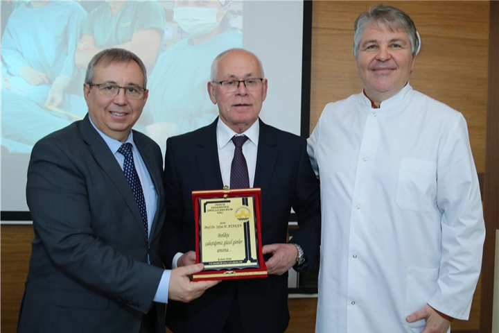 Törende konuşan Üroloji Ana Bilim Dalı Başkanı Prof. Dr. Hakan Akdere, Prof. Dr. İrfan Hüseyin Atakan’ın hayatı ve doktorluğa nasıl başladığı hakkında bilgi vererek “İrfan abi hakkında söylenecek o kadar güzel şey var ki… İrfan abinin mücadeleci bir kişiliği vardır. Benim asistanlık dönemimde üzerimde çok büyük emeği oldu. Daha büyük emekleri ise ben akademisyen olarak buraya başladığımda oldu. Burada bir mücadele vardı ve o mücadele içerisinde bizi hem kolladı hem de bilgileriyle bugünlere gelmemizi sağladı. Bu anlamda ben kendisine minnettarım. Ona büyük bir vefa borcum var. Ona bundan sonraki yaşamında başarılar dilerken bizden ayrılmamasını canı gönülden temenni ediyorum. Tekrar hepinizin huzurunda ona çok teşekkür ediyorum” dedi.