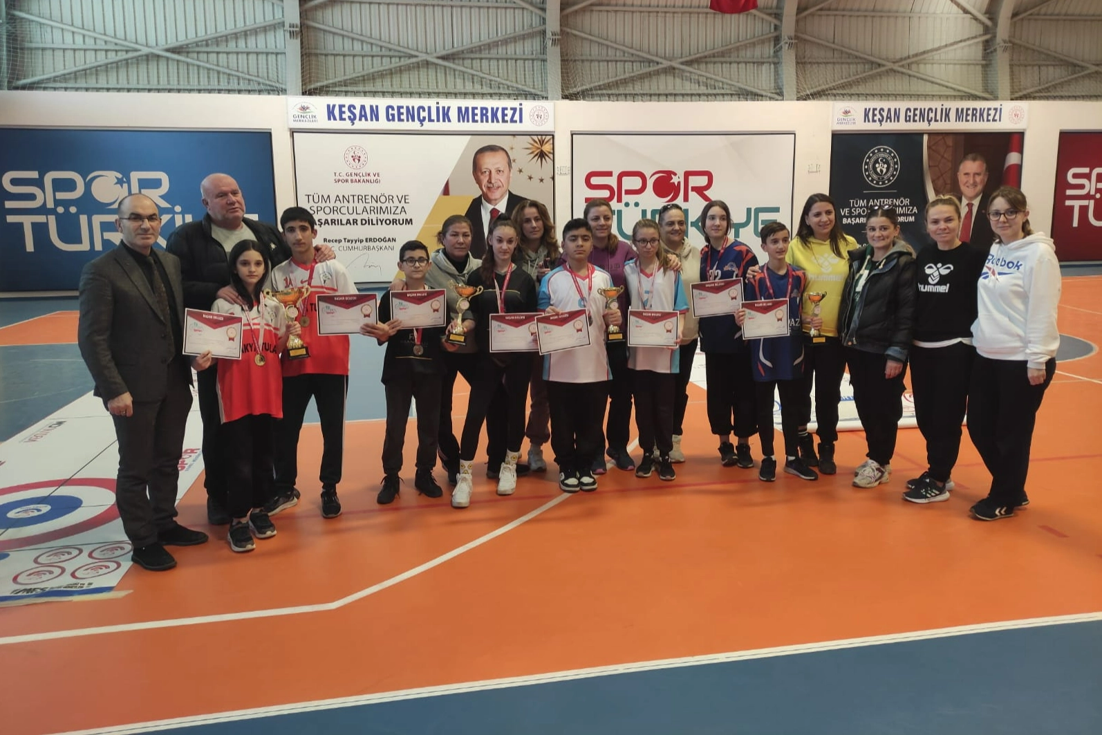 Son olarak Keşan Gençlik Merkezi Spor Salonu’nda yıldızlar kategorisinde düzenlenen okullar arası Floor Curling İl Birinciliği müsabakaları, 7 okulun nefes kesen mücadelesine sahne oldu. Gün boyu süren müsabakalarda sporcular, kategorilerinde dereceye girebilmek ve düzenlenecek Türkiye Şampiyonası’nda okullarını ve illerini temsil edebilmek için ter döktü.