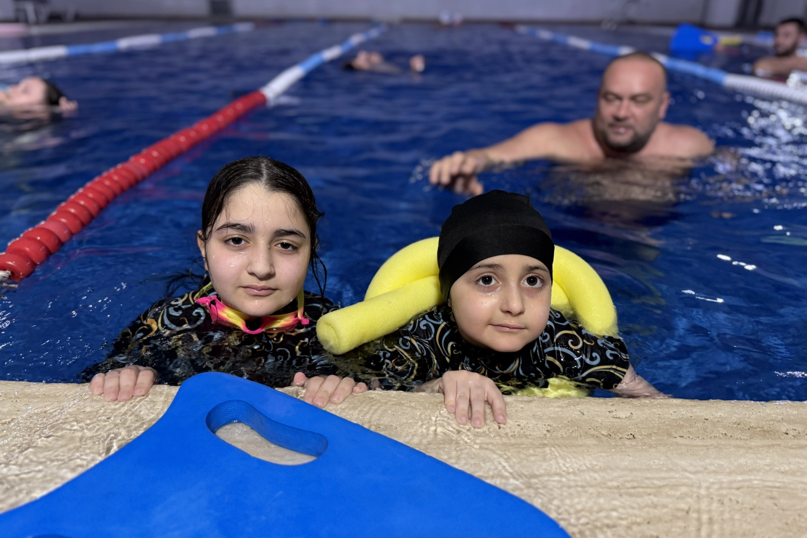 Amine'nin 10 yaşındaki ablası Hümeyra Dorceylan da yüzme kursuna katılarak kardeşine destek oluyor.