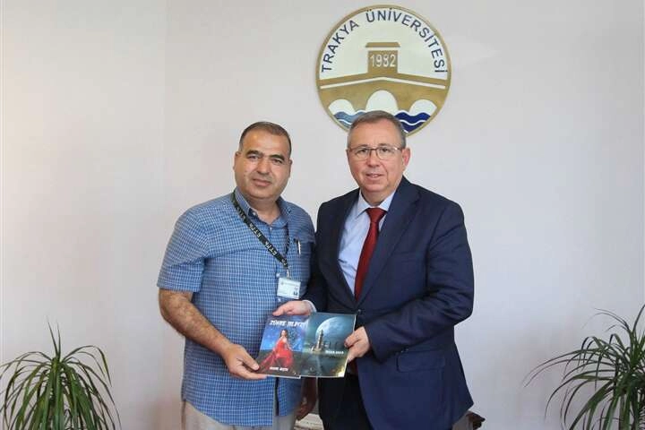 Sağlık Teknisyeni Hasan Akçın, Rektör Prof. Dr. Erhan Tabakoğlu’nu makamında ziyaret ederek, kaleme aldığı “Eleni” ve “Zühre Yıldızı” isimli şiir kitaplarını hediye etti.