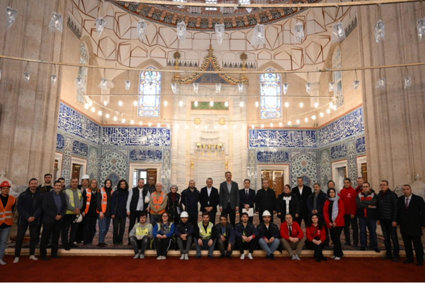 Edirne'de 1752'de yaşanan depremde caminin ciddi hasar aldığını hatırlatan Aksu, sonraki dönemlerde camide çeşitli onarımlar yapıldığını ancak mevcut restorasyonun bilim kurullarının rehberliğinde bütüncül bir anlayışla yürütüldüğünü ifade etti. Kubbe tezyinatına ilişkin kamuoyunda iki farklı görüş bulunduğunu aktaran Aksu, UNESCO normları ve tescil hükümleri doğrultusunda mevcut motiflerin korunmasına karar verildiğini söyledi.