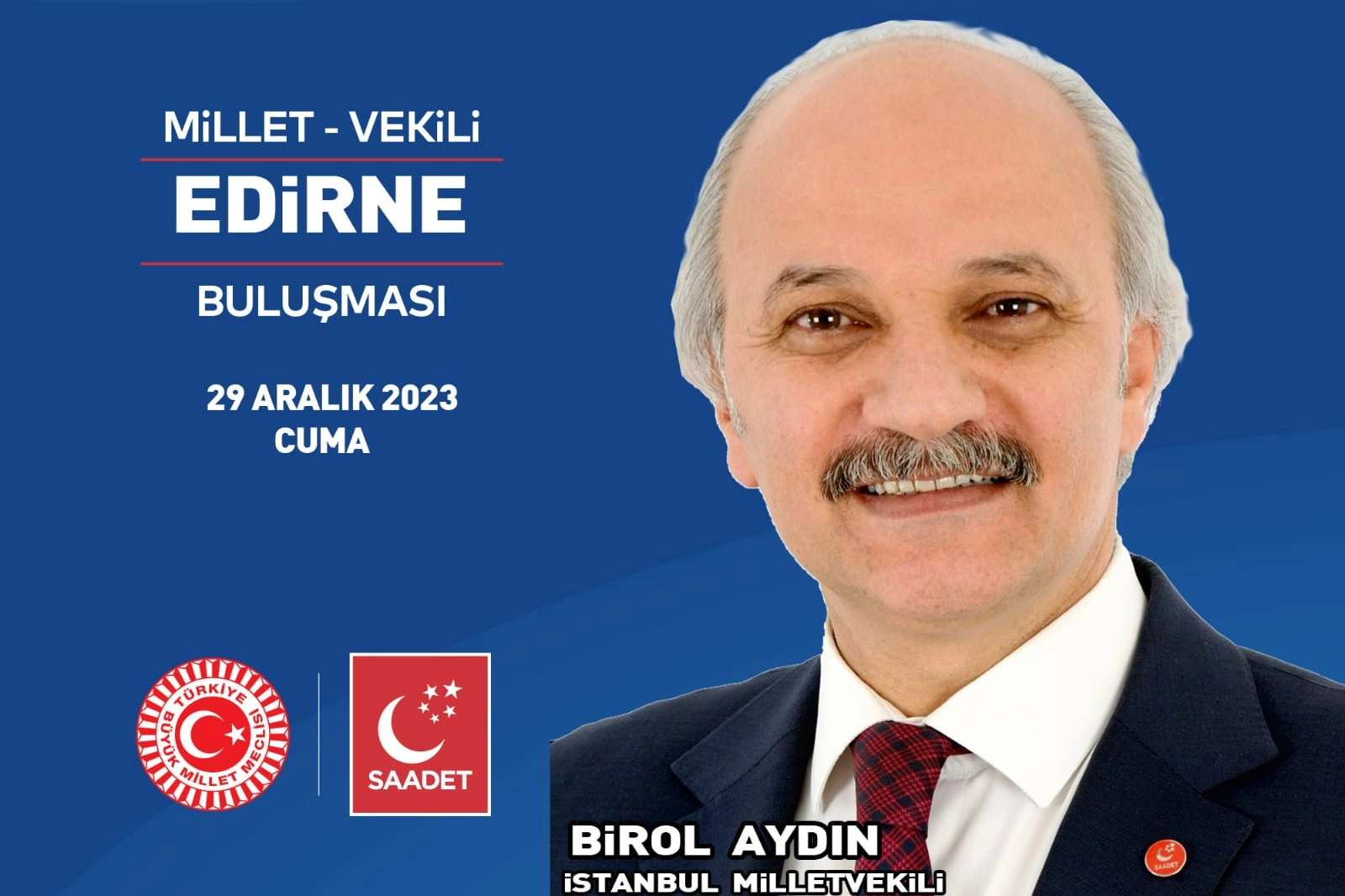 Saadet Partisi'nin "Milletin Vekilleri, Milletle buluşuyor" programı kapsamında Saadet Partisi Parti Sözcüsü ve İstanbul Milletvekili Birol Aydın Edirne'ye geliyor.