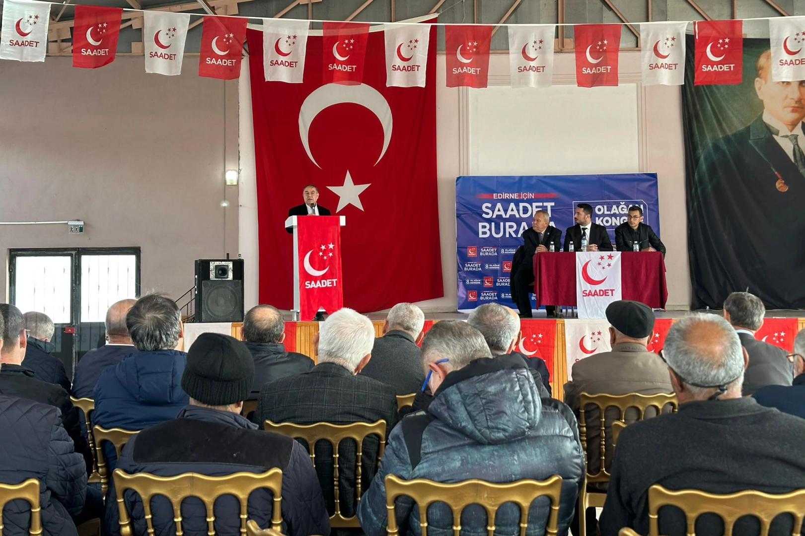 Saadet Partisi Edirne İl Sorumlusu Mustafa İriş, kongredeki konuşmasında; “Ülkenin kalkınması, milli bir ekonomi, dış politika, eğitim, savunma, sanayi ve milli bir tarım politikası ile mümkün olabilir. Ülkemiz tüm bunlardan kopuk, dışa bağımlı ve işbirlikçi zihniyetlerle yönetiliyor. Ülkemizin her alanda işgal edildiği bir dönemde hepimize daha çok görev düşüyor. Borca ve sömürüye dayalı dünya para sisteminin batmakta olduğuna görüyorsunuz. Gelen sesler onların batışı, adil ve hakça bir düzenin kurulacağının ayak sesleridir. Yapılması gereken öncelikle başta İslam ülkelerinde olmak üzere kendi aramızda ortak para birimi kullanıp onların sömürülerine son vermektir. Şunu unutmayalım ki, İslamsız saadet olmaz.” dedi.