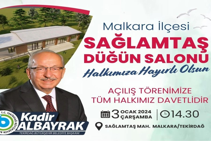 Tekirdağ Büyükşehir Belediyesi olarak il genelinde önemli yatırımları hayata geçirmeye devam ettiklerini belirten Tekirdağ Büyükşehir Belediye Başkanı Kadir Albayrak, “Yapımı tamamlanan Sağlamtaş Düğün Salonu projemizin açılışını yapacak olmanın mutluluğunu yaşıyoruz. Bu tesisimiz uzun yıllar boyunca halkımıza hizmet verecektir. Cumhuriyetimizin 100. Yılında yüzyılın yatırımlarını Tekirdağ’a kazandırıyoruz. Sosyal, kültürel, sportif ve ulaşım alanında önemli projeleri hayata geçiriyoruz. Sağlamtaş Düğün Salonumuzun hayırlı olmasını diliyor, vatandaşlarımızı açılış törenimizde bizlerle birlikte olmaya davet ediyorum” dedi.