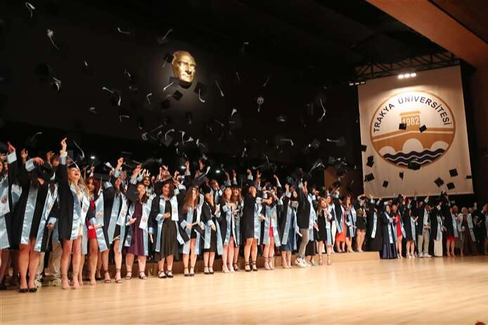 Trakya Üniversitesi Sağlık Hizmetleri Meslek Yüksekokulu (MYO) Mezuniyet Töreni büyük bir coşkuyla gerçekleştirildi. Balkan Kongre Merkezi’nde düzenlenen törende Tıbbi Laboratuvar Teknikleri, Ortopedik Protez ve Ortez, Fizyoterapi, Tıbbi Dokümantasyon ve Sekreterlik, Ameliyathane Hizmetleri, Anestezi, İlk ve Acil Yardım, Tıbbi Görüntüleme Teknikleri, Patoloji Laboratuvar Teknikleri, Radyoterapi, Odyometri, Elektronörofizyoloji ile Ağız ve Diş Sağlığı Teknikleri bölümlerinden mezun öğrenciler diplomalarını aldı. Öğrenciler, tören sonunda hep birlikte kep atarak mezuniyet coşkusu yaşadı.