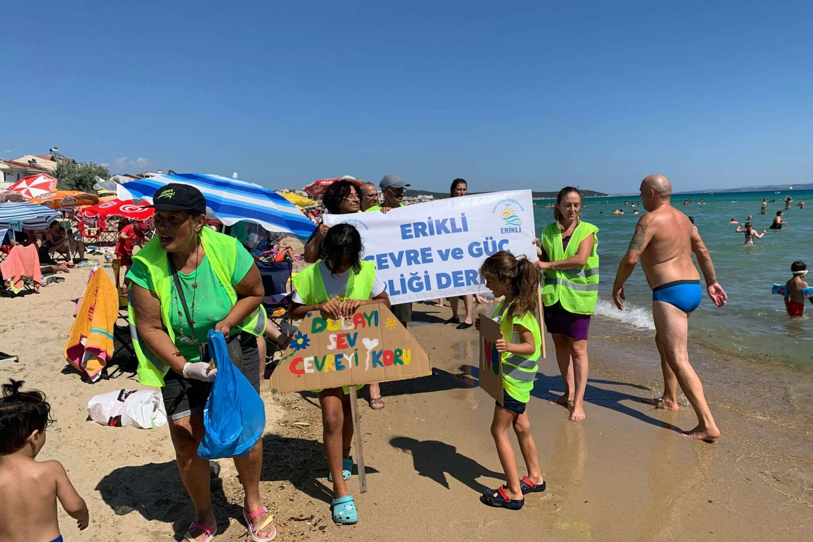 Dernek Başkan Yardımcısı Seher Kurçeren, gazetecilere yaptığı açıklamada, sahillerdeki kirliliğe dikkat çekmek istediklerini belirtti.