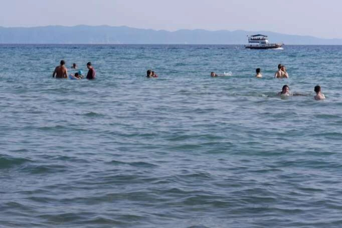 Deniz suyu sıcaklığının 27 derece ölçüldüğü Saros Körfezi'nde serinlemek isteyenler, sık sık denize girerek serin suların tadını çıkarıyor. Sahillere gelenlerden bazıları şemsiyelerin altında oturuyor, bazıları ise güneşlenmeyi tercih ediyor.