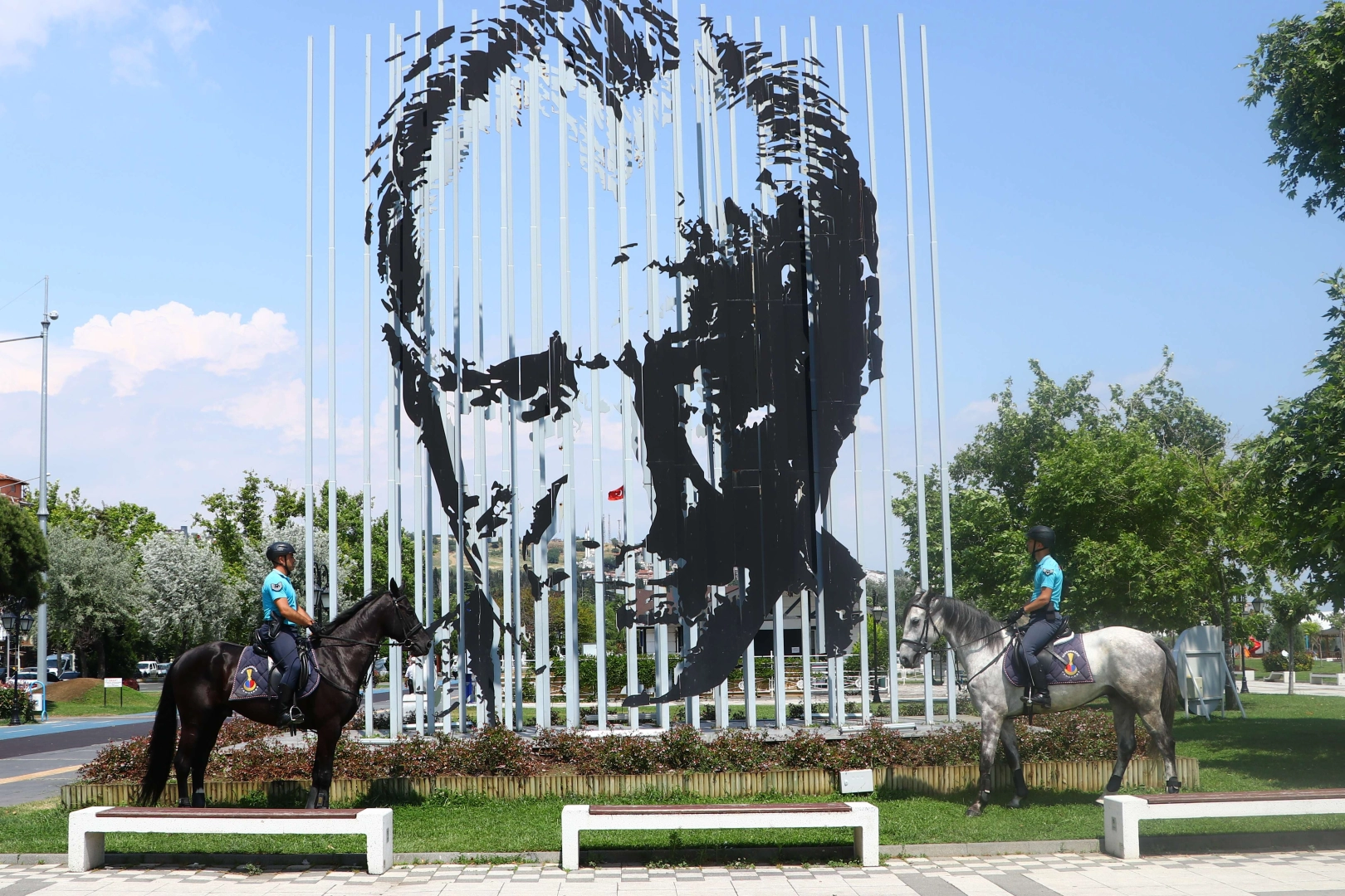 Nevşehir Jandarma At Köpek Eğitim Merkezinden (JAKEM) gönderilen atlı tim, Süleymanpaşa ilçesine geldi.