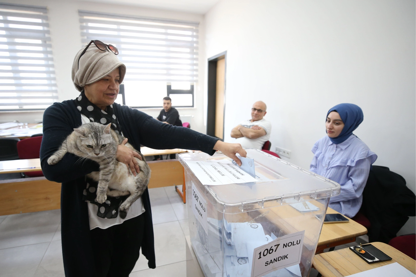 Yaklaşık 10 yıl önce sokakta bulduğu "Duman" isimli kedisi ile Gazi Mustafa Kemal İlkokuluna gelen Çelik, 1067 nolu sandıkta oyunu kullandı.