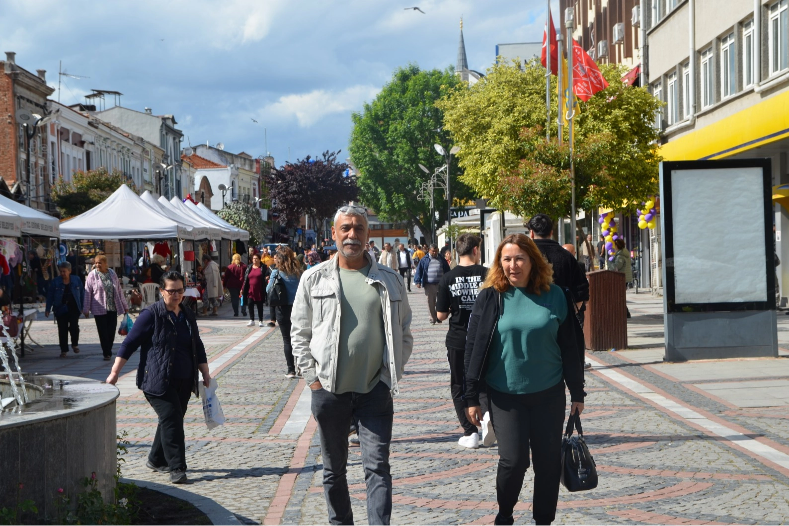 Edirne'de bulutlu ve yağışlı hava, bugün yerini güneşe bıraktı. Trafiğe kapalı Saraçlar Caddesi'nde, güneşin çıkmasıyla birlikte hareketlilik arttı. Cadde boyunca yürüyen insanlar, keyifle güneşin tadını çıkararak alışveriş yaptı.