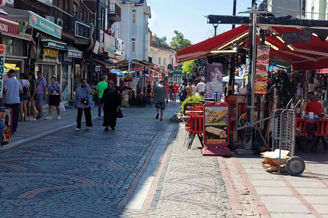 Edirne’nin trafiğe kapalı olan Saraçlar Caddesi, güne yoğun bir kalabalıkla başladı. Kentin alışveriş ve sosyal yaşam merkezlerinden biri olan bu cadde, sabah saatlerinden itibaren vatandaşların akınına uğradı.
