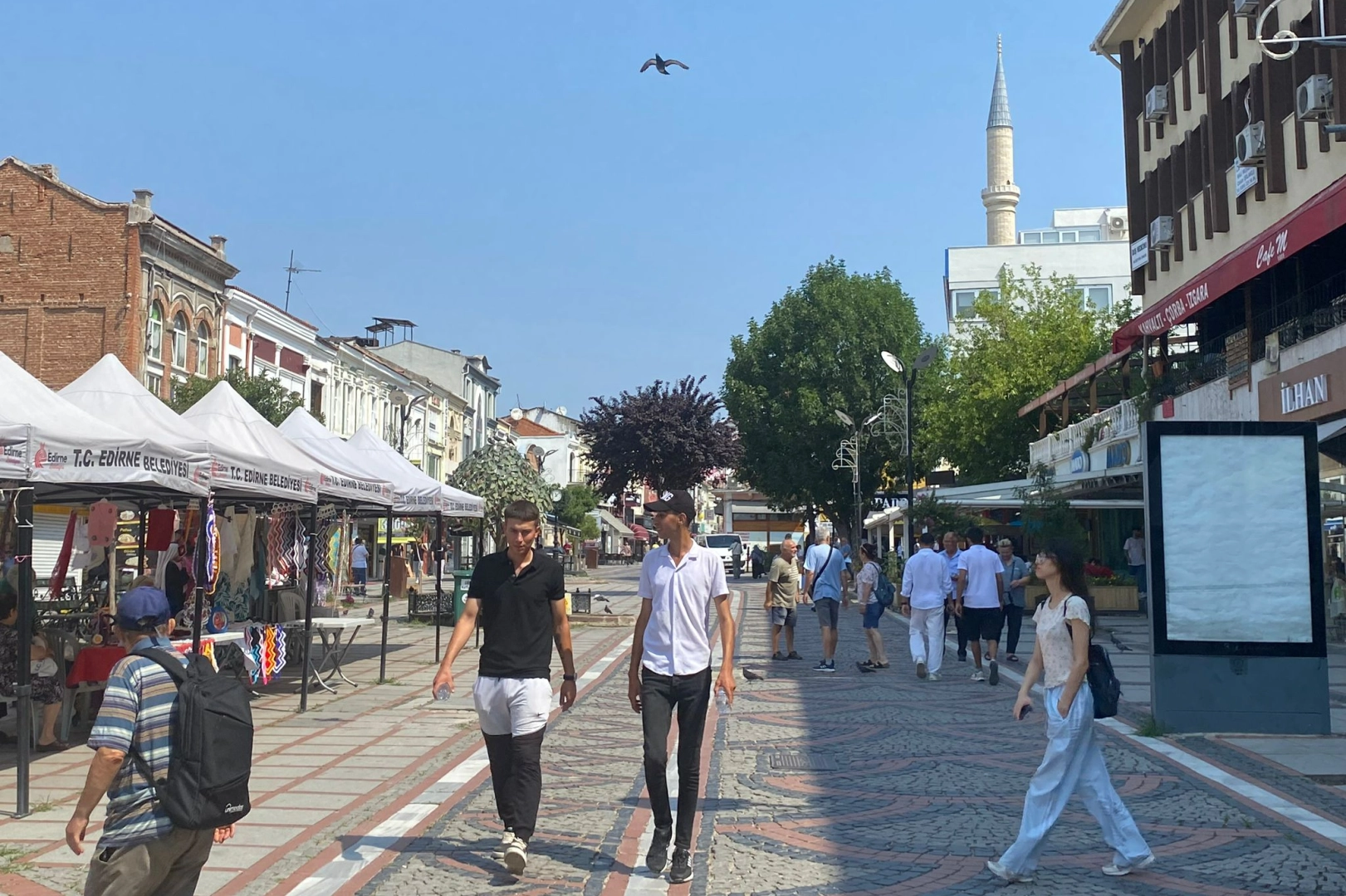 Edirne'de bulunan trafiğe kapalı Saraçlar Caddesi, sabahın erken saatlerinden itibaren yoğun bir kalabalıkla doldu taştı. Güneşin doğmasıyla birlikte şehir merkezine akın eden vatandaşlar, günlük işlerini halletmek ve alışveriş yapmak için caddeye yöneldi.