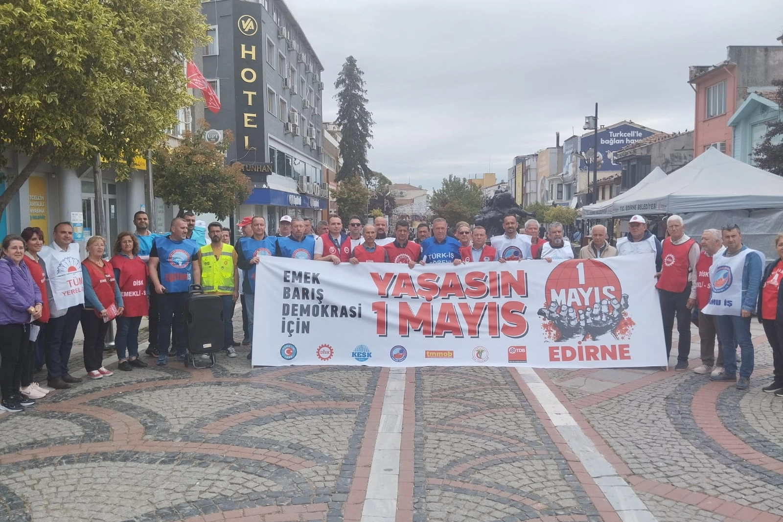 TÜRK-İŞ, DİSK, BİRLEŞİK KAMU-İŞ, KESK, TMMOB, TTB, TDHB’den oluşan Edirne Emek Ve Meslek Örgütleri Platformu, Saraçlar Caddesi’nde yaptıkları basın açıklaması sonrası, Edirneli vatandaşları 1 Mayıs Emek ve Dayanışma Günü’ne davet ettiler.