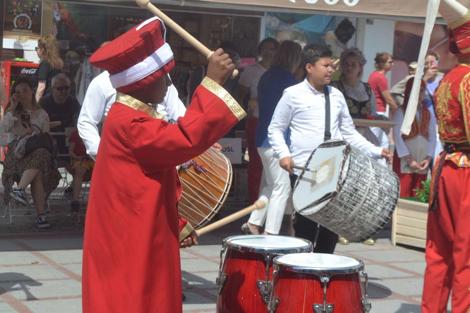 Edirne’de Saraçlar Caddesi’nde minik mehteranlar gösteri düzenledi.