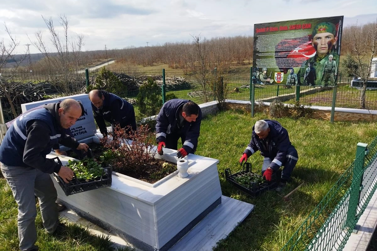 Tekirdağ Saray Belediyesi, Park ve Bahçeler Müdürlüğü’ne bağlı ekip tarafından18 Mart Şehitleri Anma Günü ve Çanakkale Zaferi dolayısıyla ilçedeki şehit mezarlarının temizliğini yaparak, şehitlerin mezarlarına çiçek ekti.