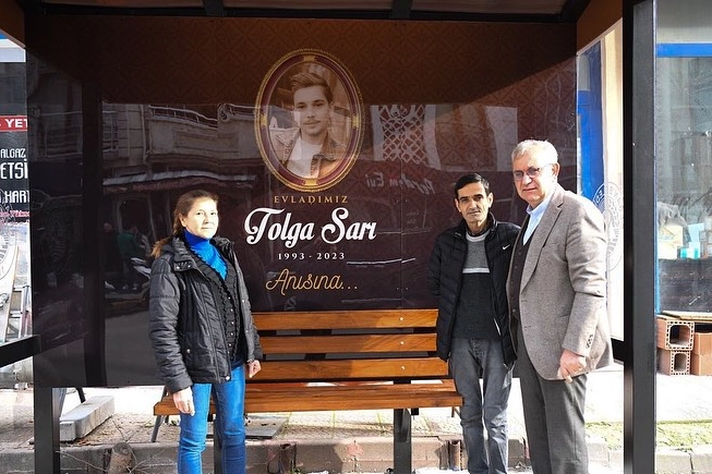Helvacıoğlu yaptığı paylaşımda: “Genç yaşta aramızdan ayrılan Tolga Sarı kardeşimizin adı artık yıllardır mesai harcadığı iş yerinin önünde, ailesi Yaşar ve Gülcan Sarı tarafından yaptırılan yolcu durağında yaşıyor. Hasretle andığımız evladımız için ailesi tarafından yapılan lokma hayrına katıldık, sonrasında da evladımızın ismini taşıyan durağı ziyaret ederek, onu bir kez daha yaş ettik. Merhum Tolga Sarı kardeşimize bir kez daha Allah’tan rahmet, ailesine sabır ve başsağlığı dileriz” ifadelerine yer verdi.