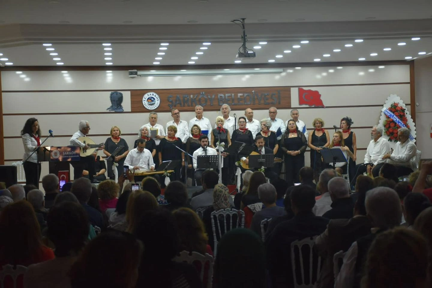 Gerçekleşen Cumhuriyet Konserinde CHP Şarköy İlçe Başkanı Seyhan Altınay tarafından Udi Bestekar Fehmi Altunay'a çiçek takdim edilirken izleyenler coşkulu bir gece geçirdi.