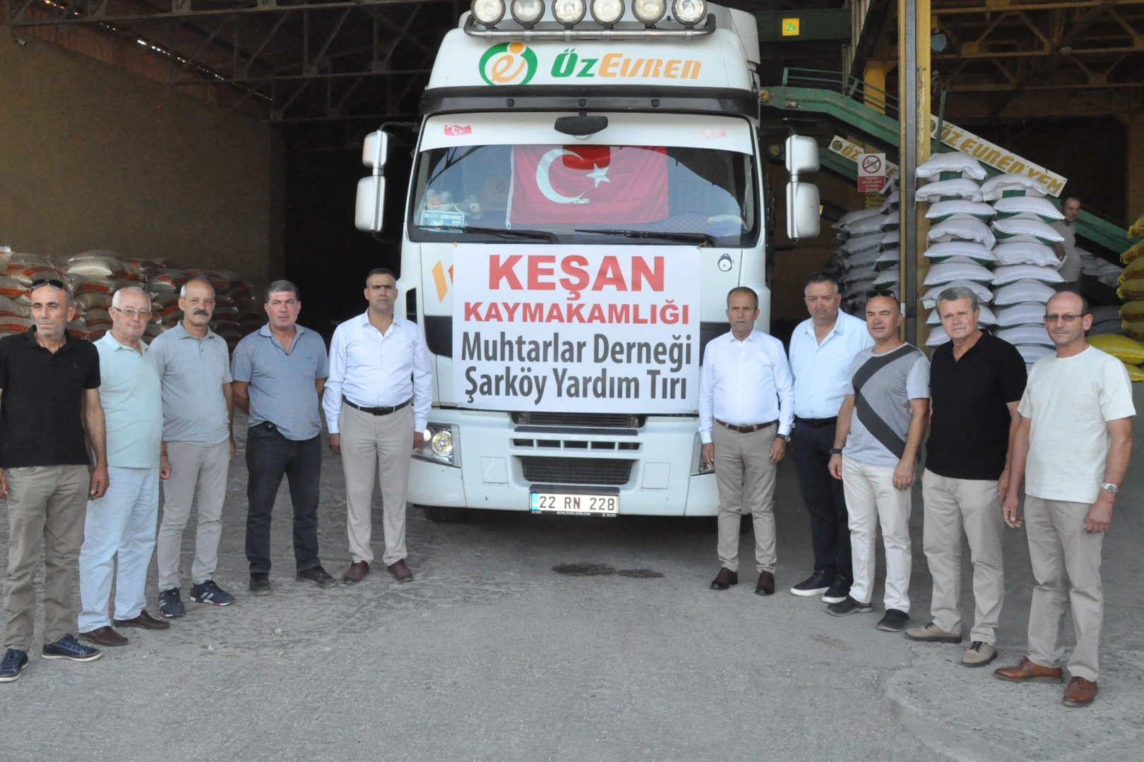 Keşan Köy ve Mahalle Muhtarları Derneği, Keşan Kaymakamlığı oluru ile Şarköy'de meydana gelen yangında hayvanlarını ve hayvanlarına verecek yemleri alevlere teslim olan üreticilere destek amacıyla başlattığı yardım kampanyası kapsamında bir tır süt yemi tedarik etti. Yemler Şarköy'e gönderildi. Dernek Başkanı Abdullah Kemik, yangından etkilenen bölge halkına geçmiş olsun dileklerini ileterek, "Şarköy'deki yangından zarar gören üreticilerimize destek olmak amacıyla Keşan mahalle ve köylerinde toplanan yardımları iletmek için başlattığımız kampanya sonucunda ihtiyaç dahilinde bir tır süt yemi tedarik ettik. Vatandaşlarımızın gönüllerinden kopan yardımları Şarköy'deki üreticilerimize iletmek için bizler birer aracı olduk. Böyle üzücü bir olay kimin başına gelir bilinmez. Dolayısıyla bu düşünceyi aklımızdan çıkarmadan hareket etmekte fayda var. Kampanyaya destek olan kaymakamımıza, vatandaşlarımıza ve muhtarlarımıza teşekkür ederiz" dedi.