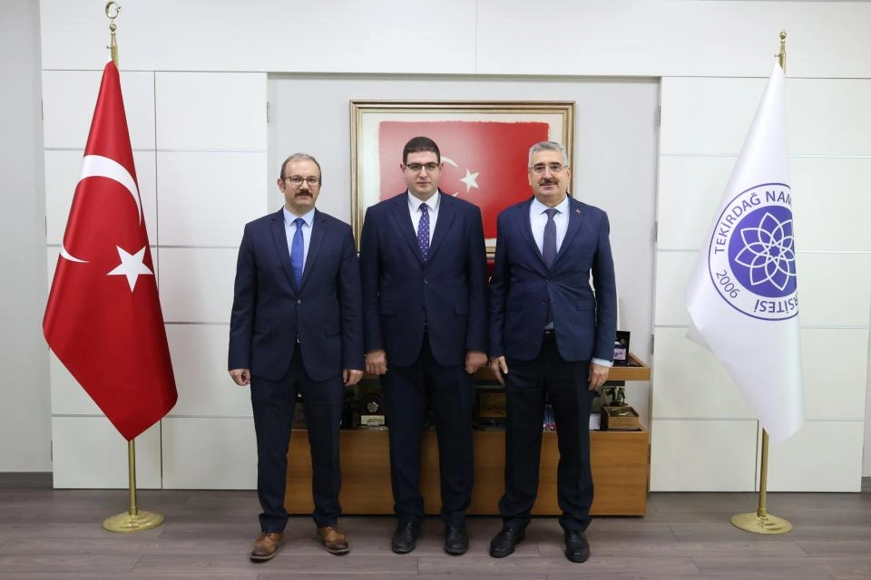 Tekirdağ Bölge Adliye Mahkemesi Cumhuriyet Savcısı Uğur Özcan ve Bölge Adliye Mahkemesi 4. Ceza Dairesi Başkanı Şemsettin Dereli, Namık Kemal Üniversitesi (NKÜ) Rektörü Prof. Dr. Mümin Şahin'i ziyaret etti.