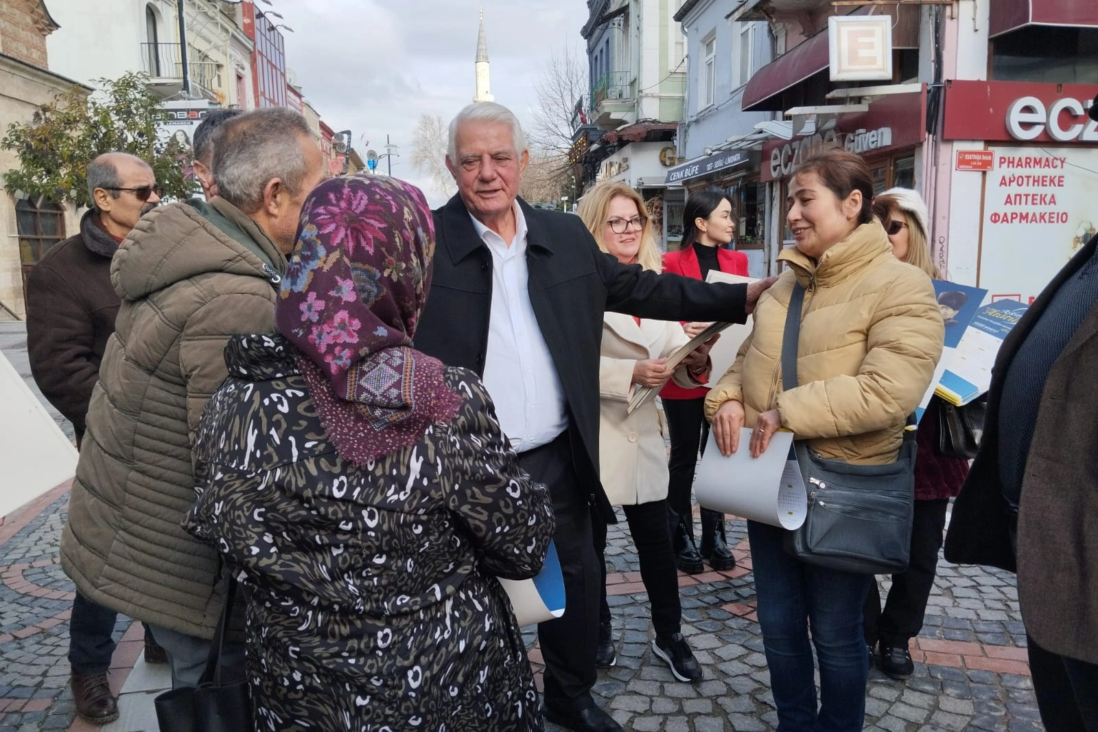 Sedefçi’nin Saraçlar Caddesi ziyaretleri sırasında Edirneliler yoğun ilgi gösterdi ve birçok vatandaş yanına gelerek sohbet etti.