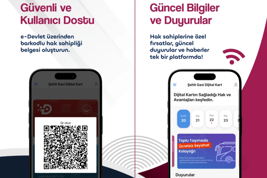 Bakan Göktaş, “Şehit yakını, gazi ve gazi yakınlarımızın ücretsiz seyahat haklarını daha kolay ve hızlı bir şekilde kullanabilmeleri için fiziksel kart taşıma zorunluluğunu ortadan kaldıran "Şehit Gazi Dijital Kart" mobil uygulamasını Türkiye genelinde hayata geçirdik. Türkiye Kart ile entegre çalışan ve toplu taşıma araçlarına binişlerde fiziksel kart taşıma zorunluluğunu ortadan kaldıran uygulama sayesinde, olası kayıp durumlarının da önüne geçiyoruz. Kullanıcılar toplu taşıma araçlarında mobil cihazları üzerinden kare kod okutularak seyahat hakkını kullanabiliyor. Bu sayede sistem, kullanıcıyı otomatik olarak tanıyarak ücretsiz seyahat hakkının kullanılmasına olanak tanıyor.” ifadelerini kullandı.