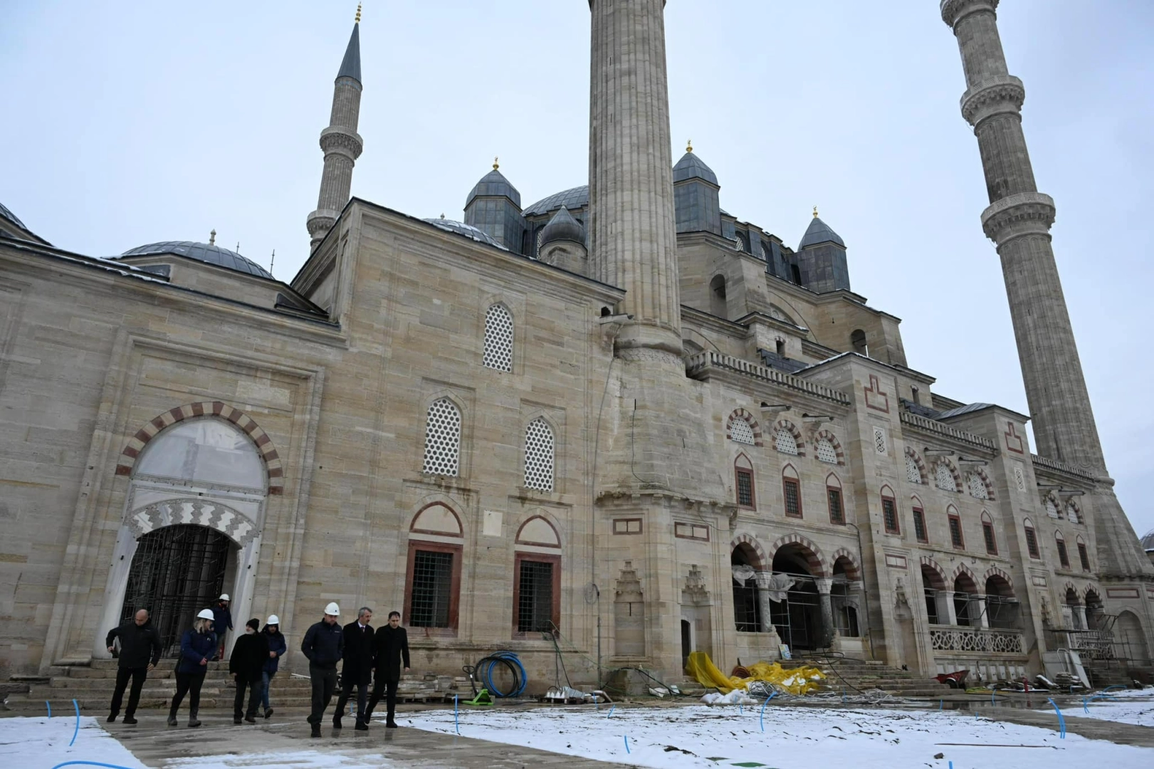 Camide incelemelerde bulunan Edirne Valisi Yunus Sezer, Vakıflar Bölge Müdürü Ahmet Saraç'tan restorasyon çalışmaları hakkında bilgi aldı.