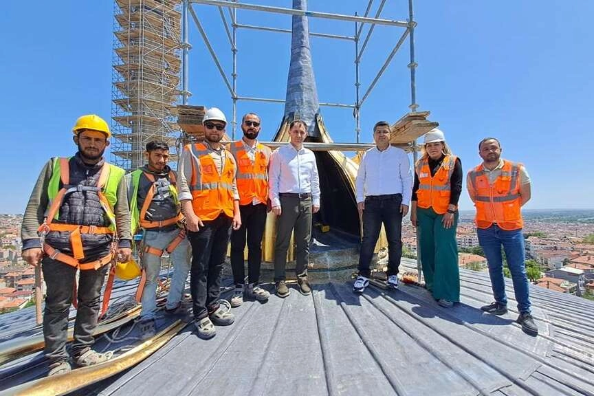 Selimiye Camii’nin restorasyonu kapsamında bugün tarihi anlardan birine tanıklık edildi. Edirne Valisi H. Kürşat Kırbıyık, Selimiye Camisi’nin ana kubbesine yerleştirilmesine başlanan alemin ahşap kısmına restorasyon anısına isminin yazılı olduğu plakayı çaktı. Tarihinin en kapsamlı restorasyonu yapılan Mimar Sinan'ın ustalık eseri Selimiye Camisinde kurşun kaplama çalışmalarının ardından ana kubbeye alem yerleştirilmeye başlandı. Edirne Valisi Kırbıyık da, bu önemli tarihe şahitlik etmek adına ana kubbeye çıkarak alemin yerleştirilme çalışmalarını izleyerek restorasyon anısına isminin yazılı olduğu plakayı ahşap kısma vidaladı.