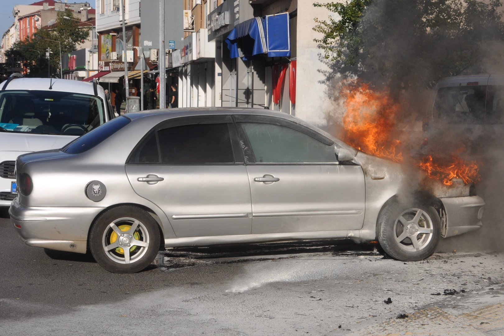 Kocasinan Mahallesi Okullar Caddesi'nde E. K. yönetimindeki 10 ** 032 plakalı otomobil, seyir halindeyken motor kısmından alev aldı.