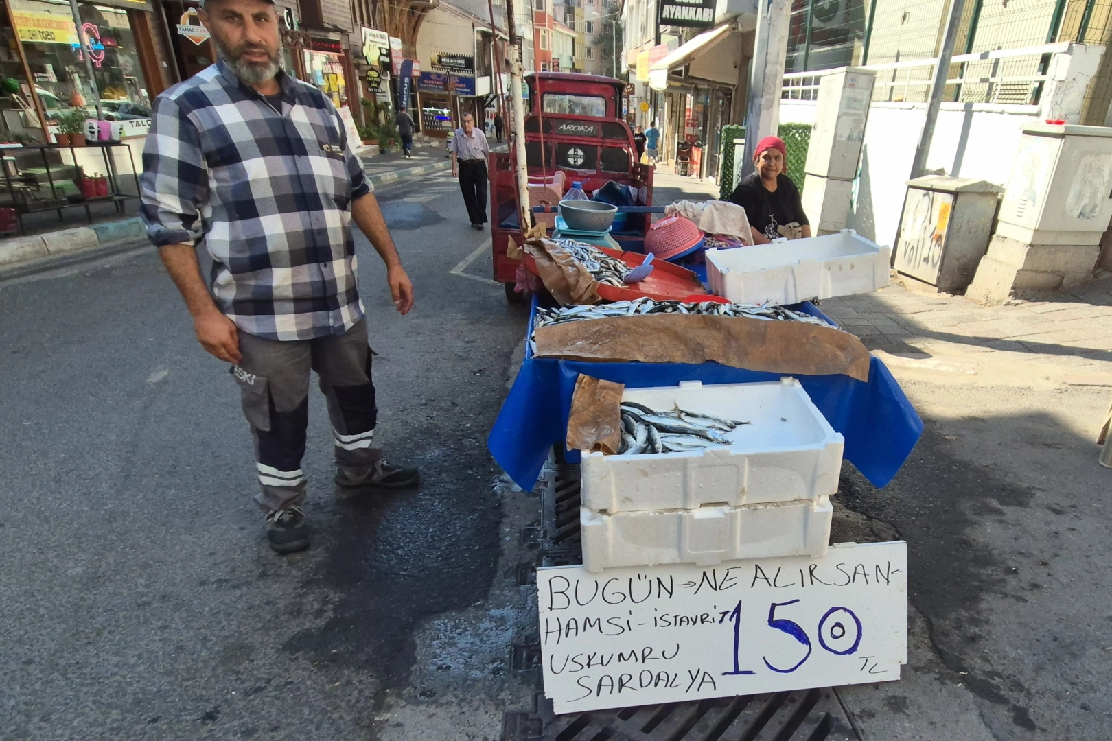 Seyyar tezgahta istavrit, sardalya, hamsi ve uskumruyu kilogramı 150 TL’den satışa sunduğunu belirten Engin Şinik, vatandaşlara her ay düzenli olarak balık yemeleri tavsiyesinde bulundu. Şinik, "Hamsi ve sardalyayı şu an 100 ile 150 TL arasında satıyorum. Bazen balık olmayınca 200 liraya kadar çıkıyor. Bu senenin balığı sardalya balığıdır. İnanın balıklar bu yıl temmuz ayından beridir o kadar lezzetli ki her aileye balık yemelerini tavsiye ediyorum" dedi. Vatandaşların özellikle palamut, lüfer ve çinekop beklediğini ifade eden Şinik, "Ama bu aralar pek çıkmıyor, bekliyoruz. Havalar halen sıcak olduğu için şu an balık az çıkıyor" diye konuştu.