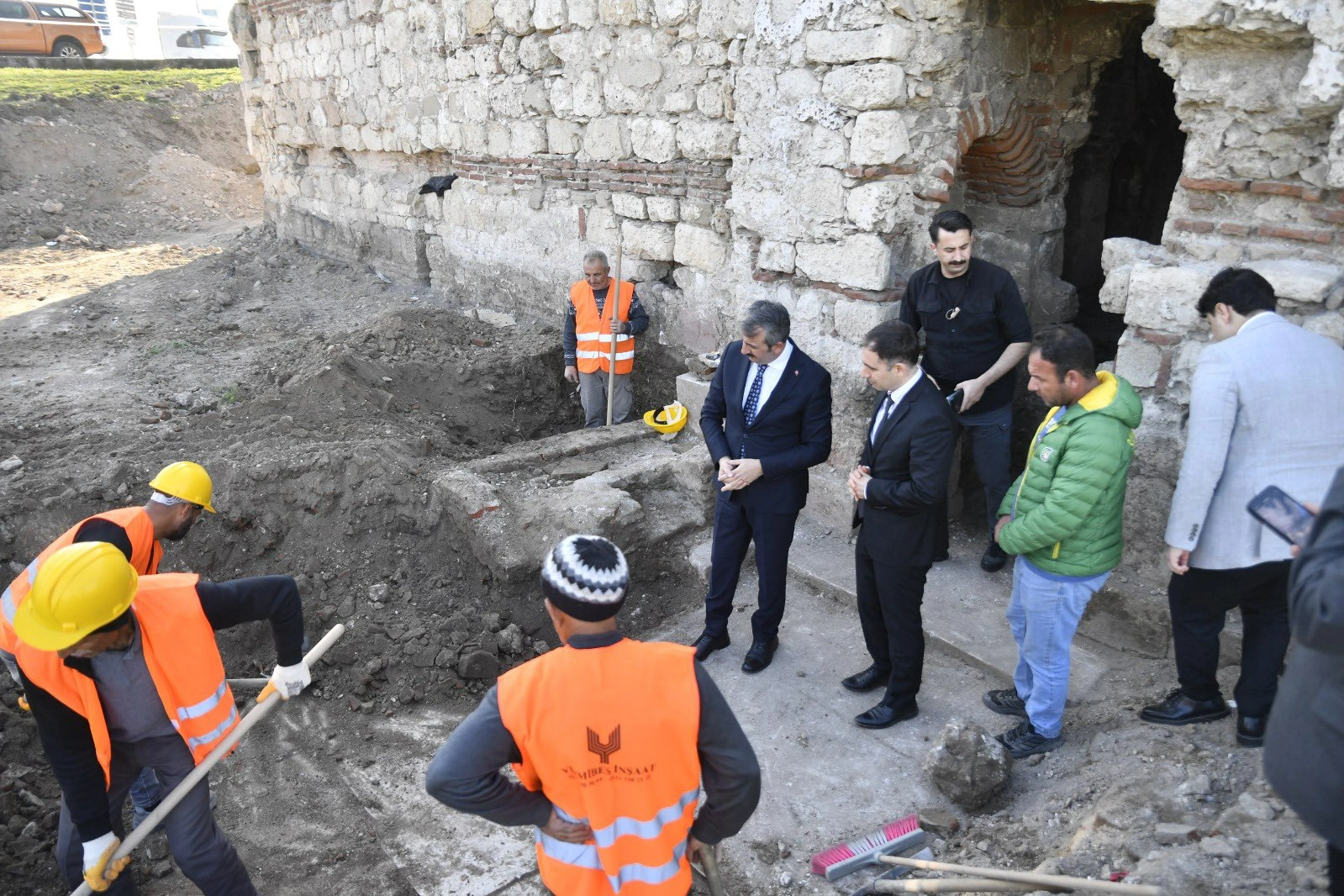 Edirne Valisi Yunus Sezer, restorasyon çalışmaları devam eden Gazi Mihal Hamamı'nda incelemede bulundu.