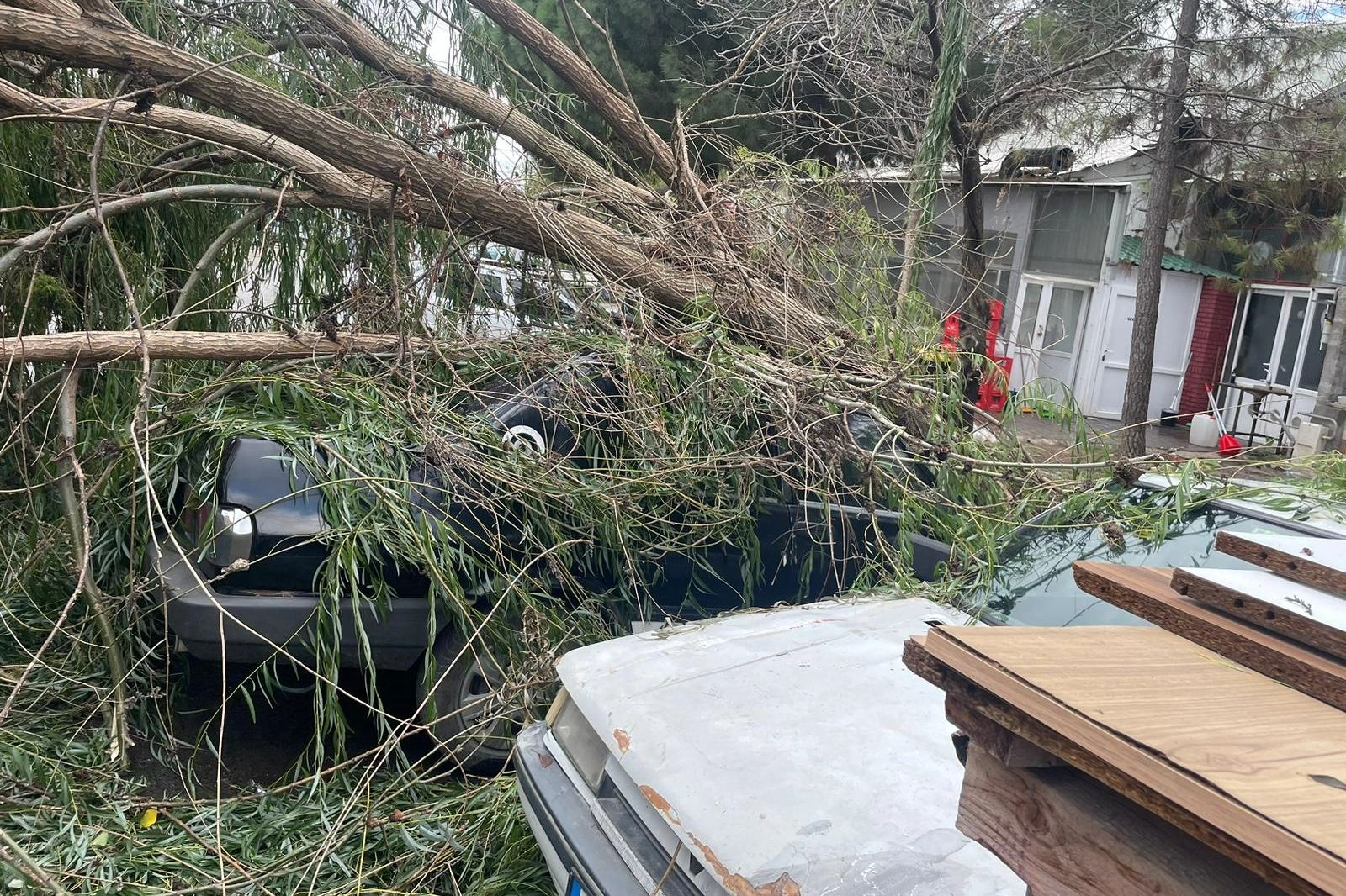 Devrilen ağaçlar nedeniyle park halindeki 3 otomobilde hasar oluştu.