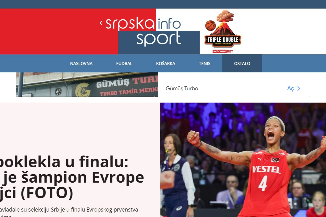 Avrupa Voleybol Şampiyonası’nda Türkiye final maçında Sırbistan’ın çekişmeli bir maç sonucu 3-2 yenerek şampiyon oldu. Batı Ekspres, maç sonucu ve Türkiye’nin şampiyonluğunun Sırp basınına nasıl yansıdığını araştırdı. İşte Batı Ekspres’in derlediği başlıklar: