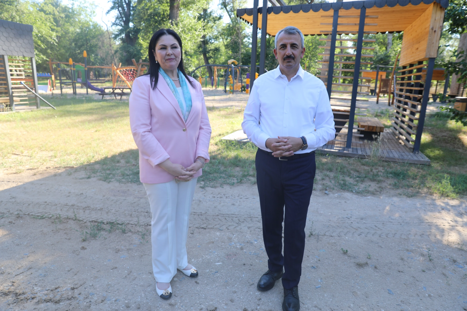 Vali Yunus Sezer ve AK Parti Edirne İl Başkanı Belgin İba yapımı devam eden Edirne Söğütlük Millet Bahçesi'nde incelemede bulundu.