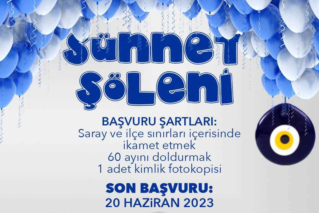 İhtiyaç sahiplerinin her zaman yanında olmaya özen gösteren, zor anlarında destek olan Saray Belediyesi, maddi durumu uygun olmayan, çocuklarına sünnet düğünü yapmaya gücü yetmeyen ailelere destek olmak amacıyla ikinci toplu sünnet şölenini düzenleyecek. 23 Mayıs 2023 Salı günü başlayan toplu sünnet şöleni kayıtları 20 Haziran Salı günü sona erecek. 60 ayını doldurmuş çocuklarını sünnet ettirmek isteyen aileler, Saray Atatürk Kültür Merkezi’nde yer alan Kültür ve Sosyal İşler Müdürlüğü’ne ikametgah ve kimlik fotokopisi ile başvuruda bulunarak sünnet için kayıt yaptırabilecekler.