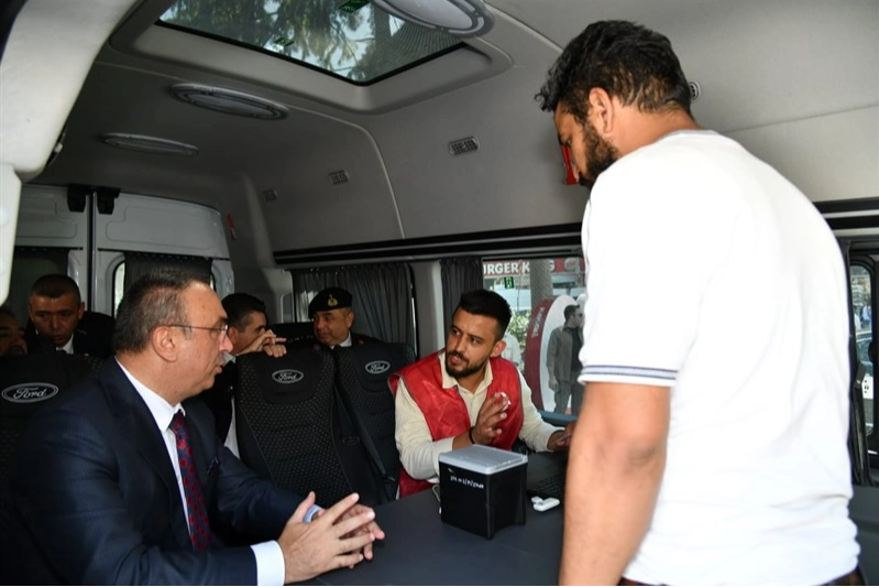 Valilikten yapılan açıklamaya göre, Soytürk, Çorlu ilçesi Atatürk Meydanı'nda hizmet veren Mobil Göç Noktası aracını ziyaret ederek yapılan çalışmalar hakkında yetkililerden bilgi aldı.