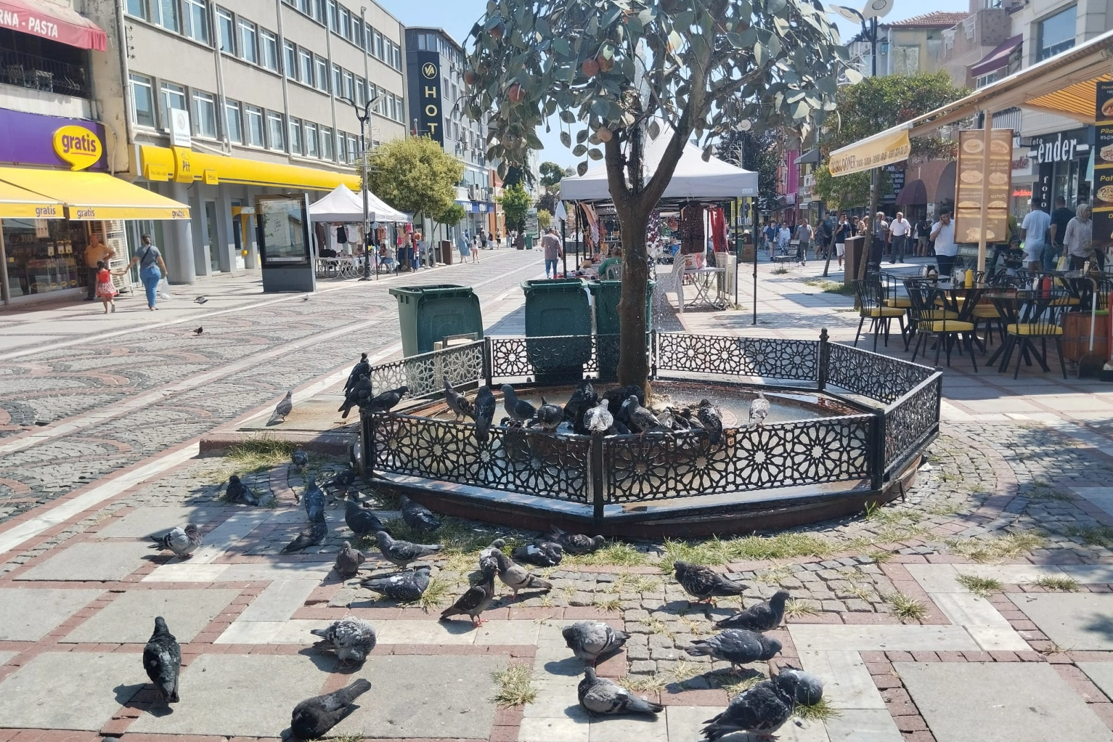 Bu yaz mevsiminde Edirne’de hava sıcaklıkları genellikle mevsim normallerinin üzerinde seyrediyor. Aşırı sıcaklıklardan hayvanlar da olumsuz etkileniyor. Edirne’de Saraçlar Caddesi’nde insanlar güneşin etkisini bir nebze olsun azaltmak için gölgeden yürümeyi tercih ederken, caddede bolca görmeye alışık olduğumuz kuşlar ise süs havuzlarında serinliyorlar. Süs havuzlarının başında toplanan kuşlar havuzdan su içip kanatlarını ıslatıyor ve sıcağın etkisini en aza indirmeye çalışıyorlar.