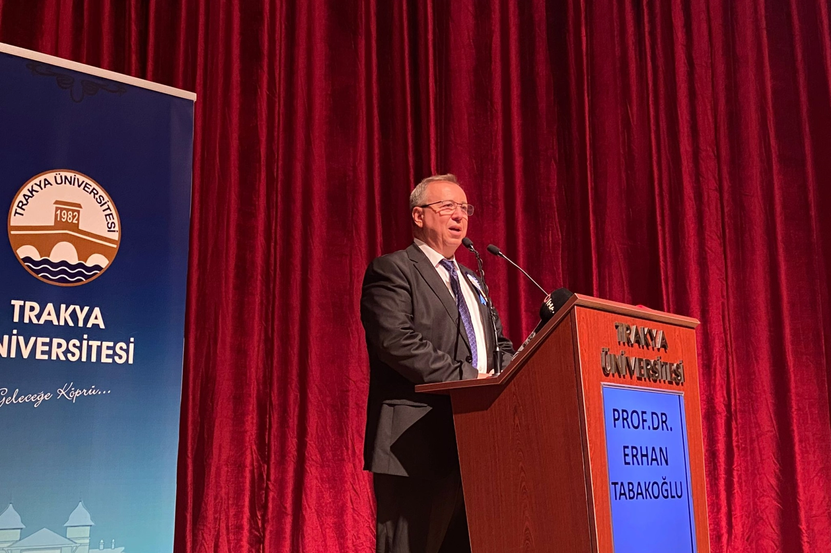 Trakya Üniversitesi 9. ve 10. Dönem Rektörü Prof. Dr. Erhan Tabakoğlu, Balkan Kongre Merkezi’nde yapılan törenle rektörlük görevini Prof. Dr. Mustafa Hatipler’e devretti. Tabakoğlu, görev süresi boyunca eşinin her zaman yanında olduğunu belirterek; yaptığı fedakârlıklar için eşine teşekkür etti.