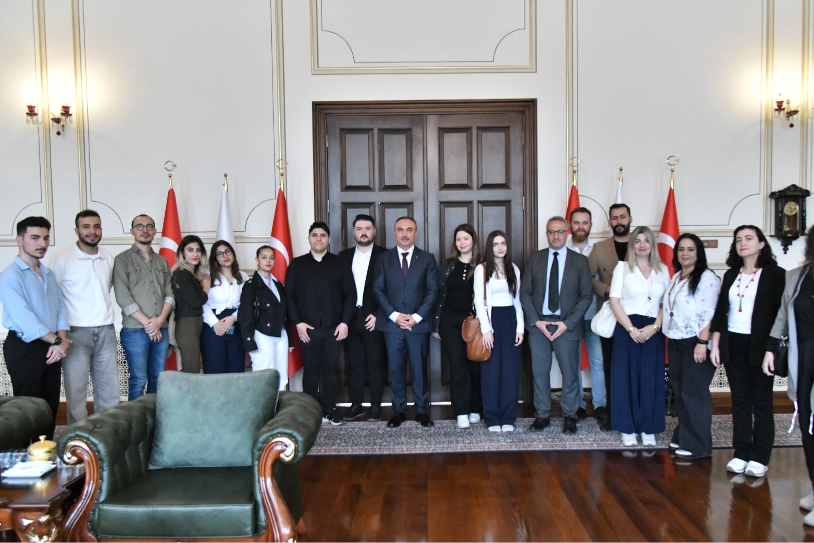 Vali Soytürk, öğrenciler ve Doç. Dr. Mahmut Keleş ile bir süre sohbet etti.