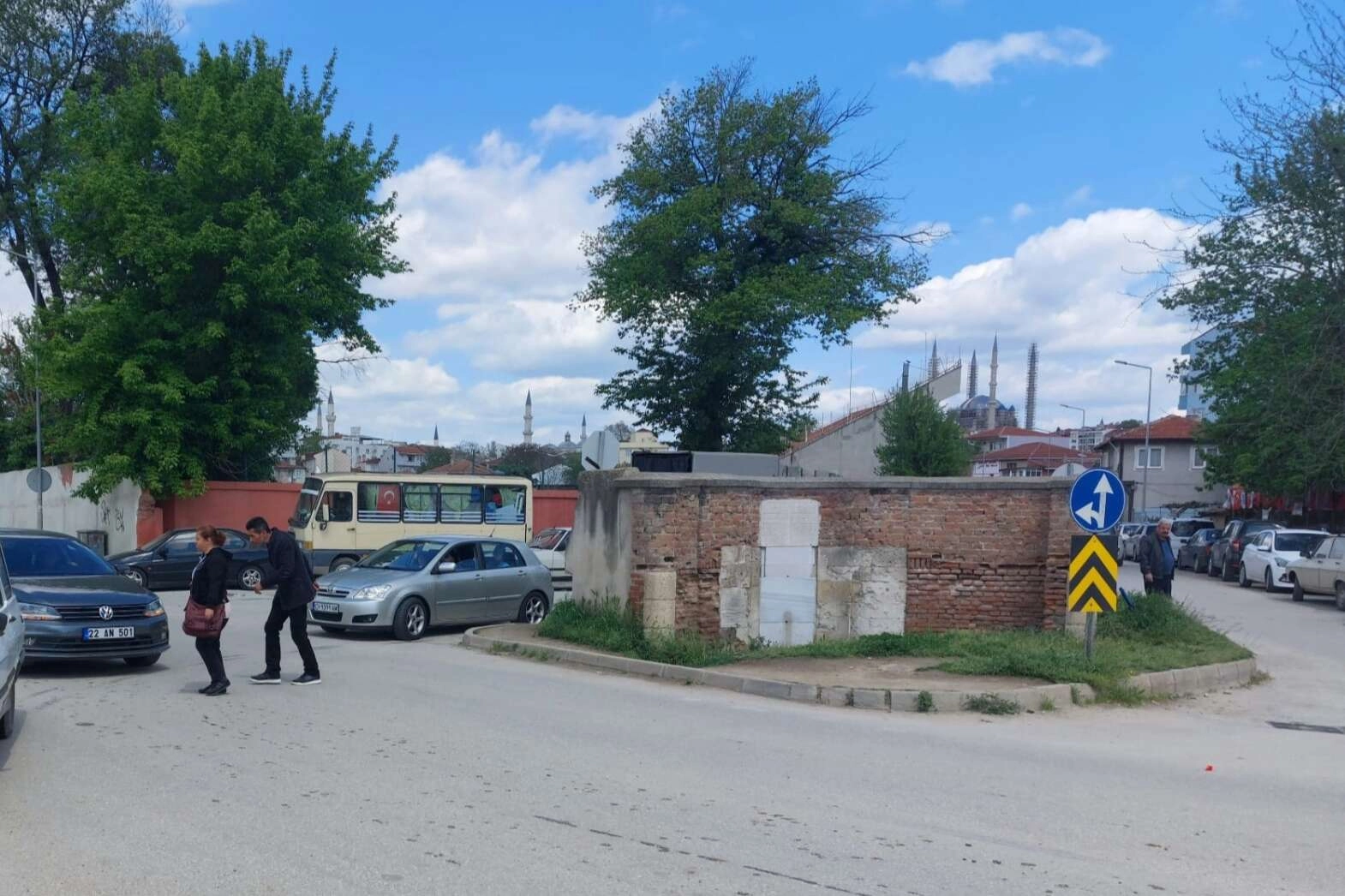 Edirne’de Ulus pazarı önünden Karaağaç’a giden yol üzerinde bulunan tarihi Mezarlık Çeşmesi, trafikte sürücülere zor anlar yaşatıyor.