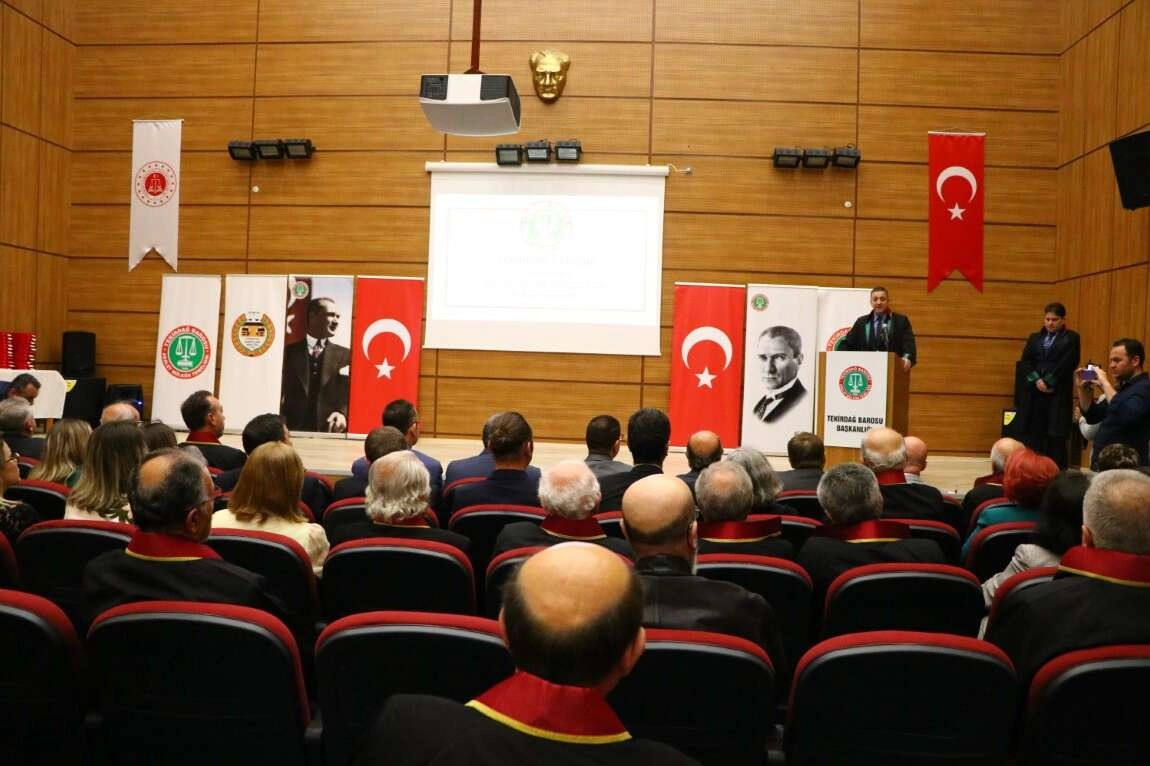 Gürcün, avukatların herkesin teminatı olduğunu ifade ederek, "Türkiye'de ve Tekirdağ'da hukukun üstünlüğüne ve demokrasiye emek veren yurttaşların daha çağdaş ve adaletli ülkede nefes alması için gecesini gündüzüne katarak, fedakarca avukatlık mesleği için ter döken ustalarımıza şükranlarımızın küçük bir nişanesi olan plaketlerini takdim edeceğiz." diye konuştu.