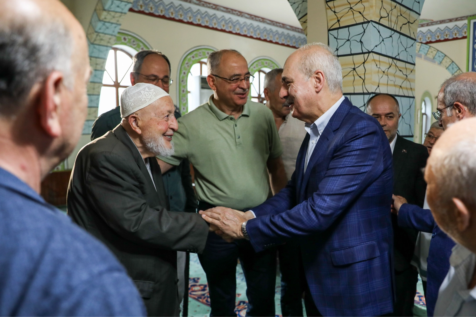 TBMM Başkanı Numan Kurtulmuş, cami çıkışında vatandaşlarla bayramlaşıp sohbet etti.