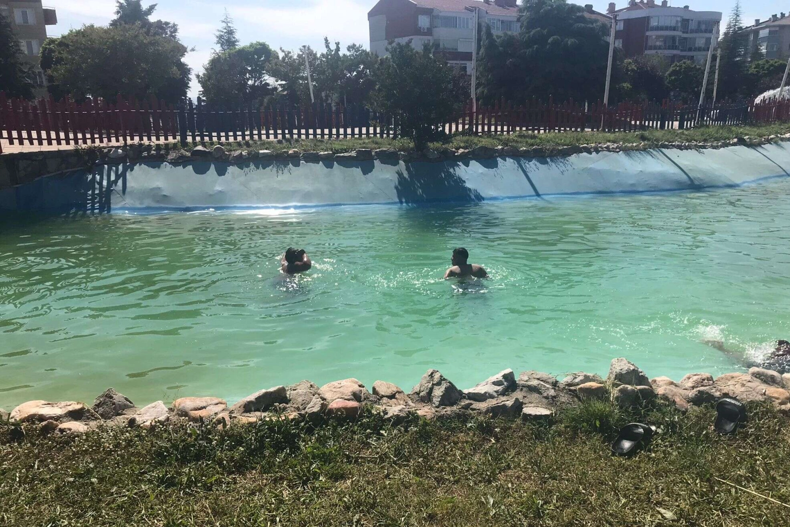 Bu son derece tehlikeli davranışlar karşısında çocukları uyaracak görevli yok. Oysa havuzun ışıklandırması nedeniyle çok sayıda kablo mevcut. Bir elektrik kaçağı olması durumunda üzücü durumların meydana gelmesi olası. Ayrıca suya atılmış onlarca kırık şişe suya çıplak ayakla girmeyi tehlikeli hale getiriyor.