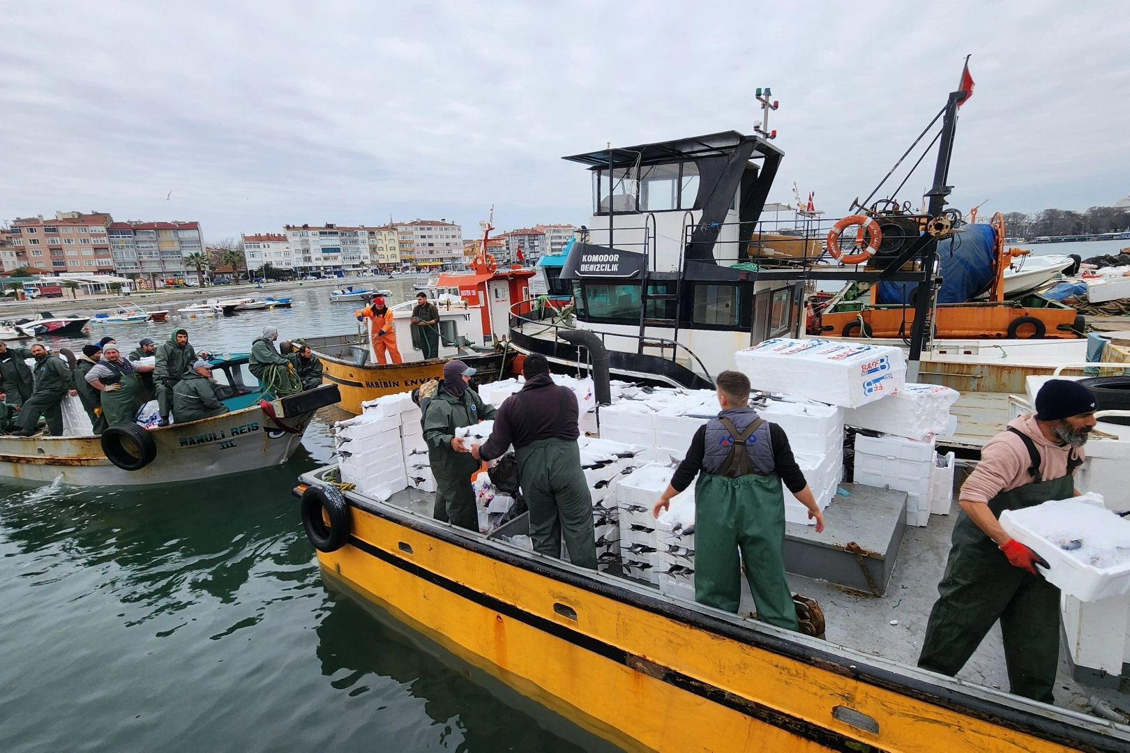 Marmaraereğlisi açıklarında denize açılan Tekirdağlı balıkçılar, sezonun en bereketli günlerinden birini yaşadı. Ağlara takılan yüzlerce torik balığı teknelerde yoğunluk oluştururken, limana dönüşte yaklaşık 500 kasa dolusu torik dikkat çekti. Yüksek yağ oranı ve güçlü aromasıyla sofralarda yoğun talep gören torik, av miktarının artmasıyla hem tezgahlarda hareketlilik oluşturdu hem de balıkçılar için önemli bir ticari kazanç kapısı oldu. Toriklerin tanesi ise 2 bin 500 TL'ye satılıyor. Balıkçılardan Salim Güler, günün verimli geçtiğini belirterek, "Güzel bir balık yakaladık, bereketli olsun. Yaklaşık 1000 adet torik avladık" dedi. Torik avının yanı sıra yüzlerce kasa sardalya balığının da teknelere yüklendiği gözlendi. Balıkçılar, torik bolluğunun hem kendileri hem de tezgahlar için hareketlilik oluşturduğunu ifade etti.