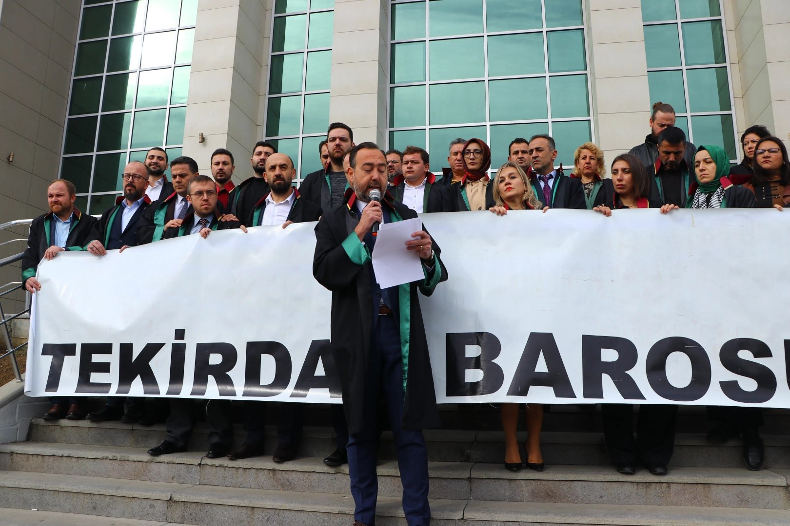 Gürcün, Tekirdağ Barosu ve onu oluşturan avukatlar olarak İsrail'in işlediği insanlık suçuna sessiz kalmadıklarını kamuoyuna duyurmak ve her ne şartta olursa olsun insan haklarını savunmaya ve korumaya devam edeceklerini haykırmak amacıyla toplandıklarını söyledi.